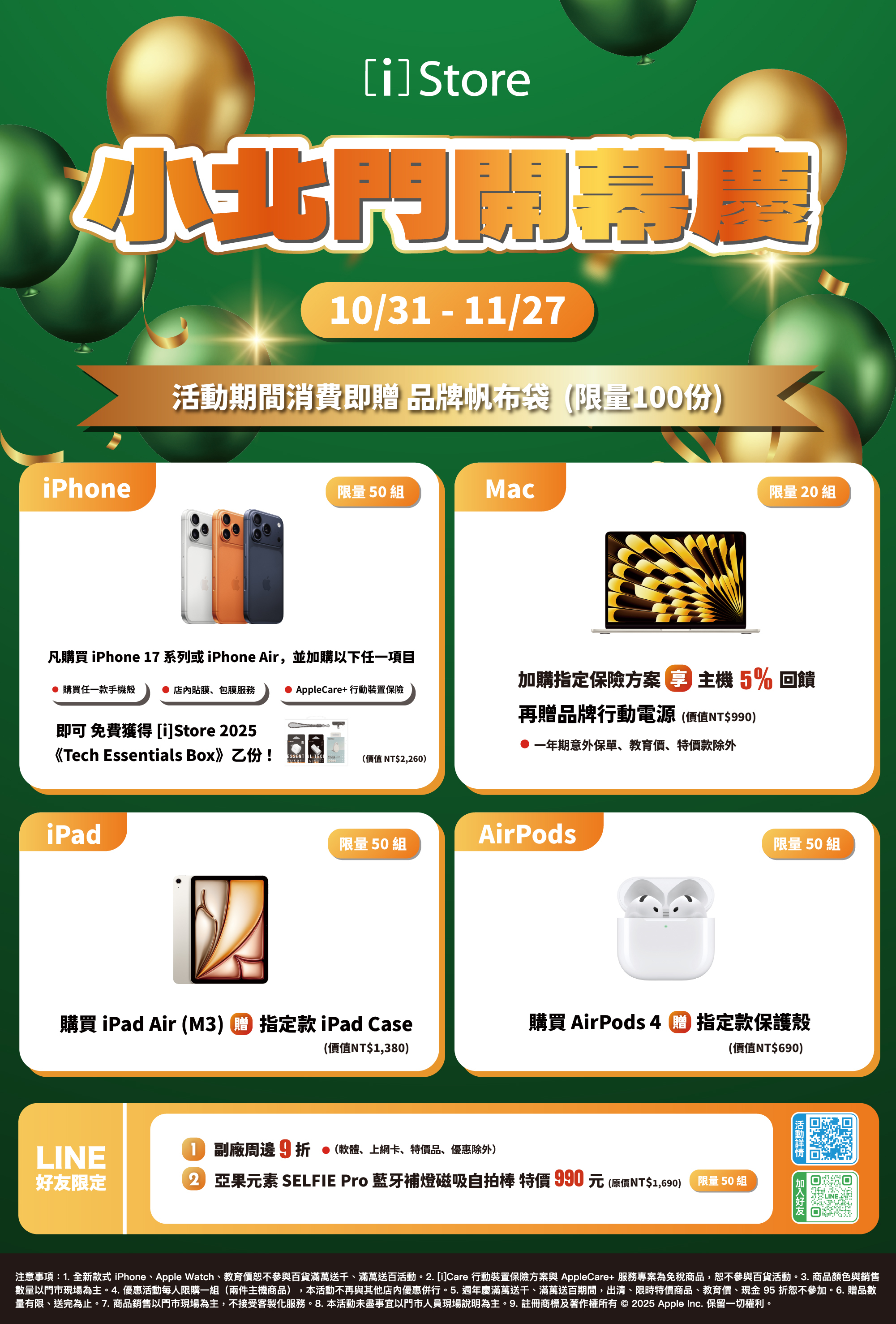 購買任一款手機殼 / 店內貼膜、包膜服務 / AppleCare+ 行動裝置保險,即可獲得[i]Store 2025《Tech Essentials Box》乙份(價值 NT$2,260)
