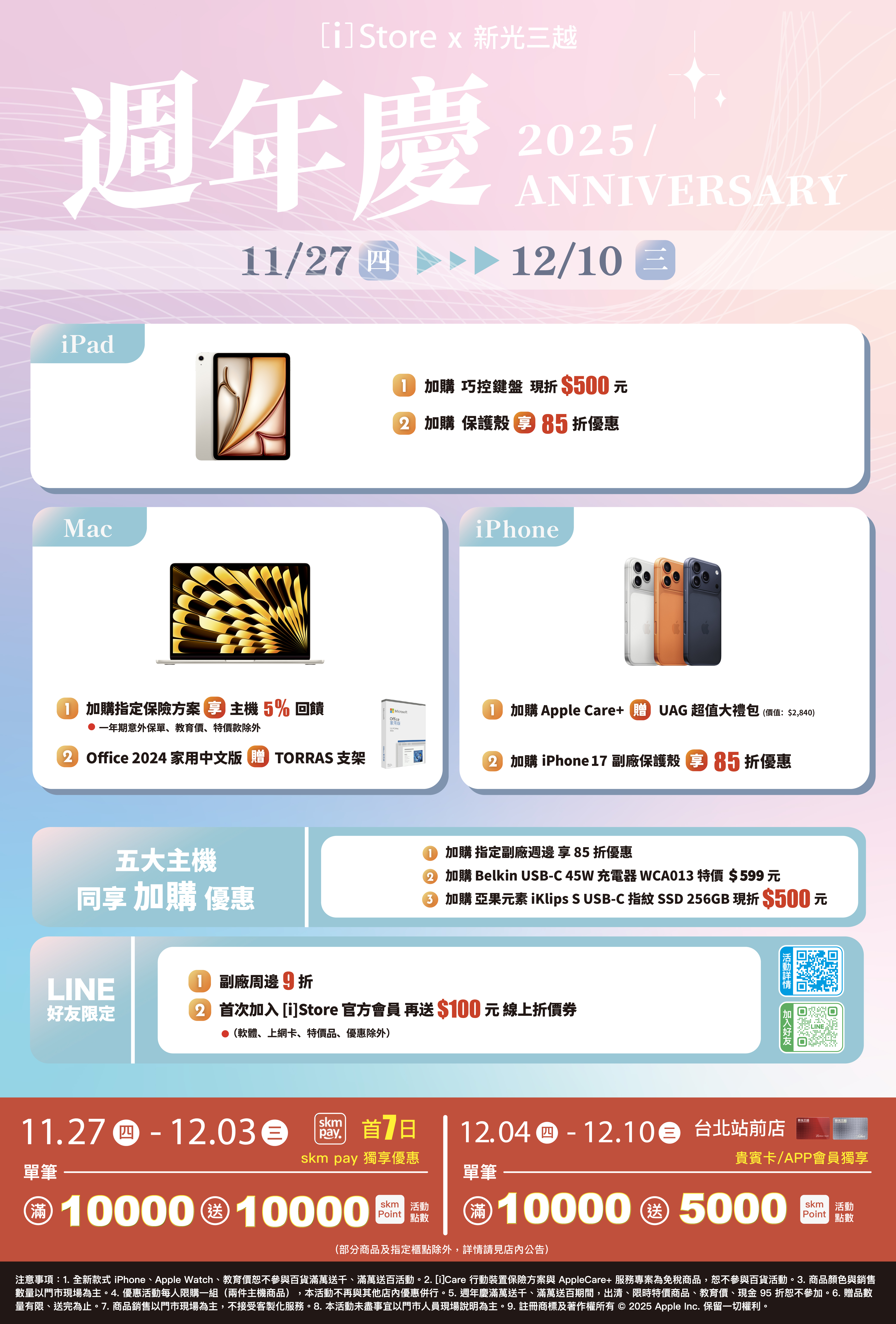 ✓ 百貨滿額禮(滿萬送千、滿萬送百)活動 & LINE 折價券不適用於新款 iPhone、Apple Watch