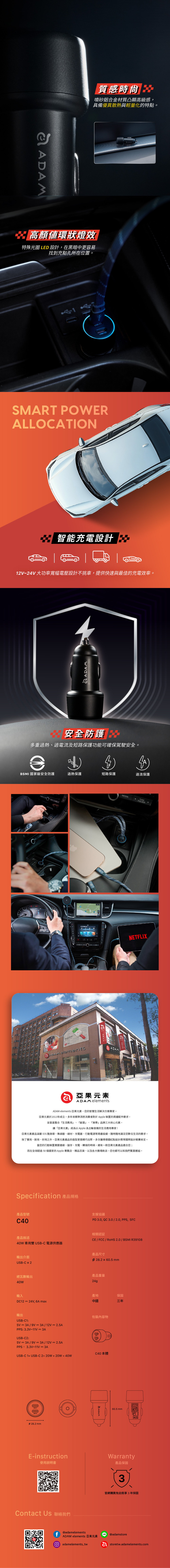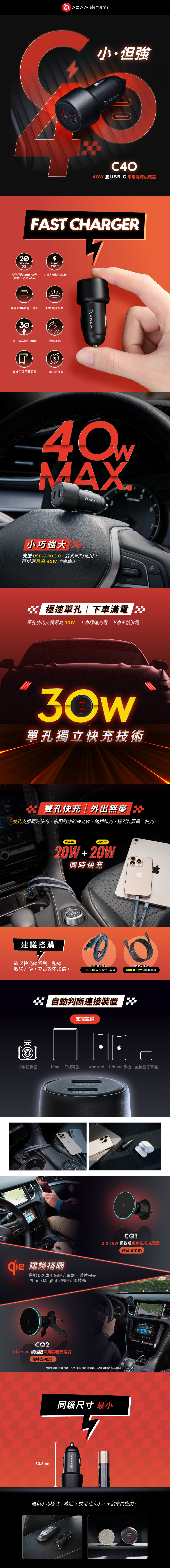 - 單孔功率可達30W,雙孔同時輸出最大支援20W+20W,並達到快充技術。