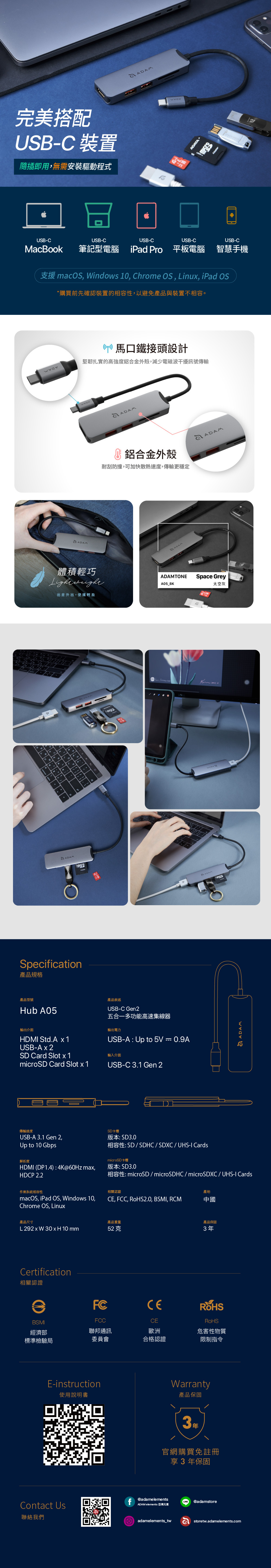 - 最輕巧的高效能影音傳輸Hub,重量僅52g