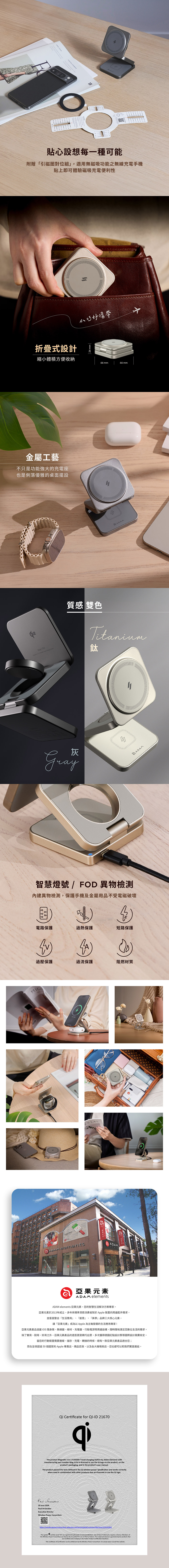 - 金屬質感體現優異工藝,除提供充電體驗外,亦可融入居家及辦公室等任何生活空間擺設。