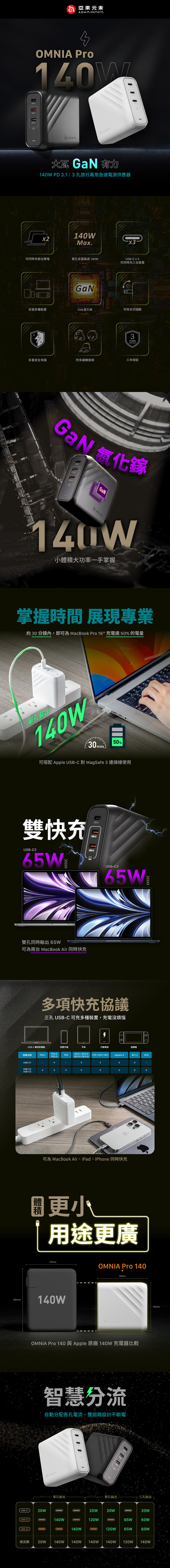 - 革命性 GaN 晶片,最新的 Power Delivery 3.1 快充協議,一手掌握 140W 充電功率。