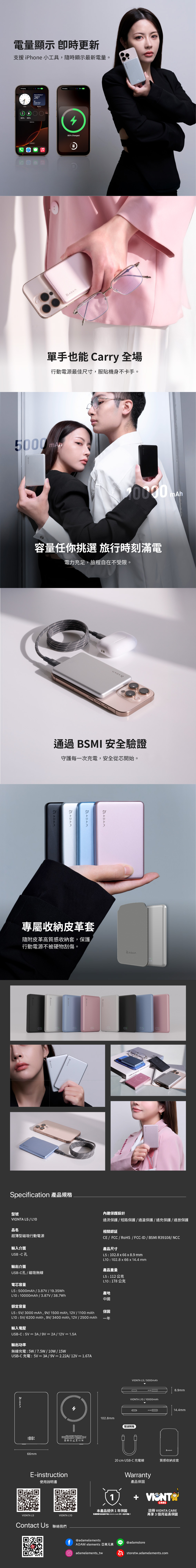- 選用更極致的尺寸,搭配5000mAH的輕薄電芯,讓行動電源更好攜帶。