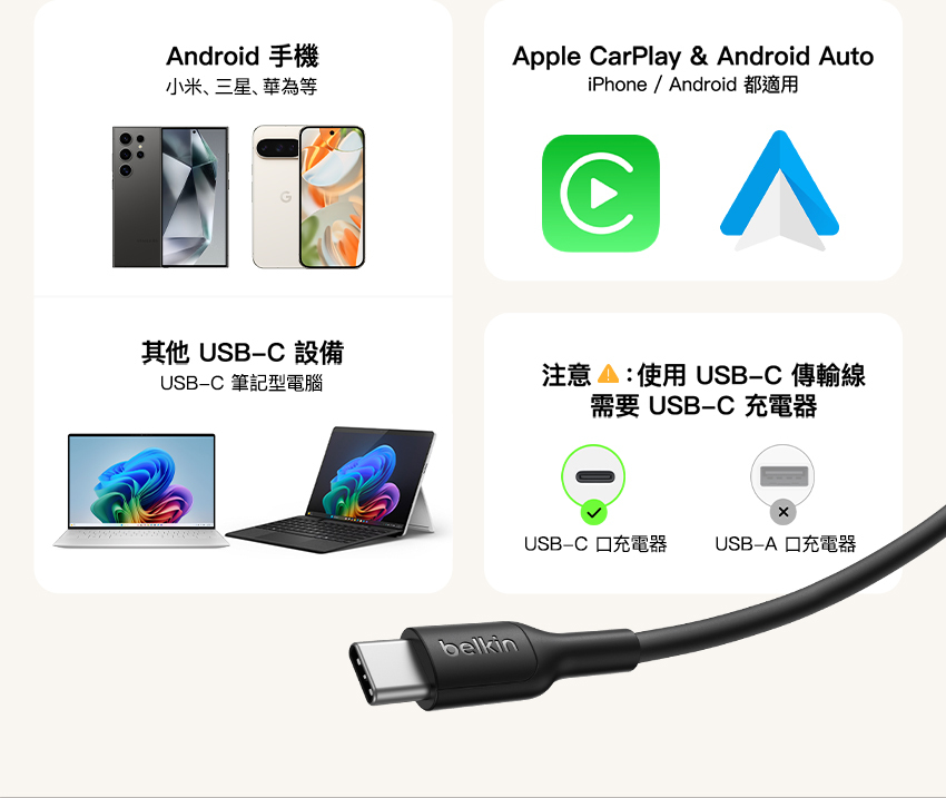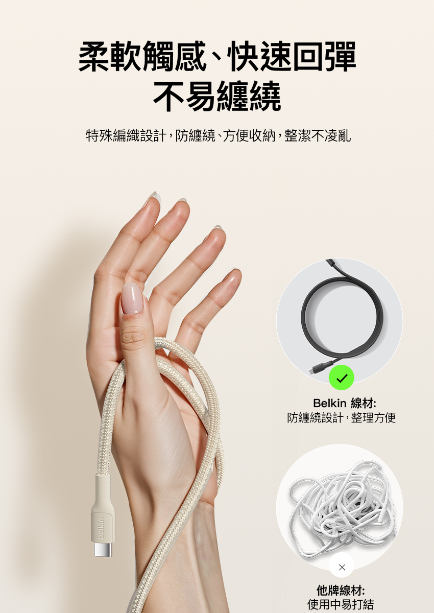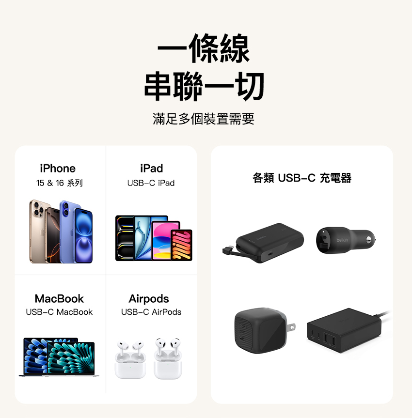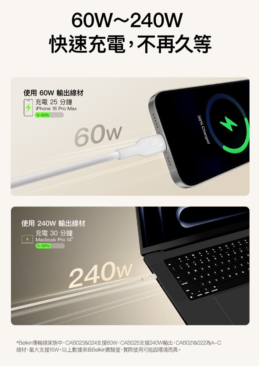 - Belkin BoostCharge Pro USB-C 60W 1m傳輸線