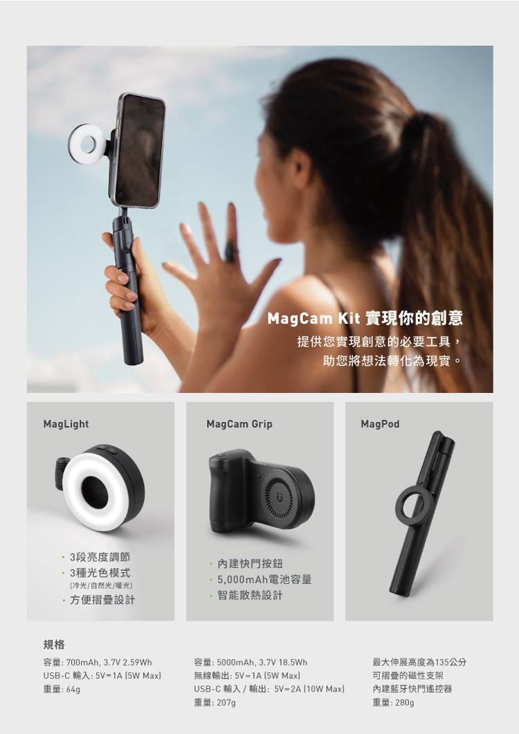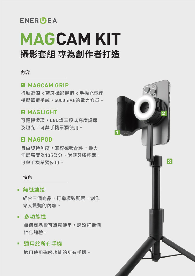 *此販售組合不包含 Energea MagCam 5000mAh 磁吸支架握把行動電源