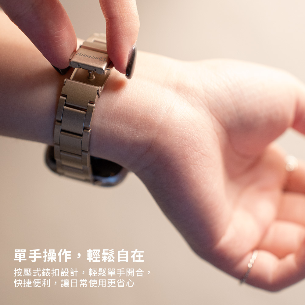 按壓式錶扣設計,輕鬆單手開合,快捷便利,讓日常使用更省心