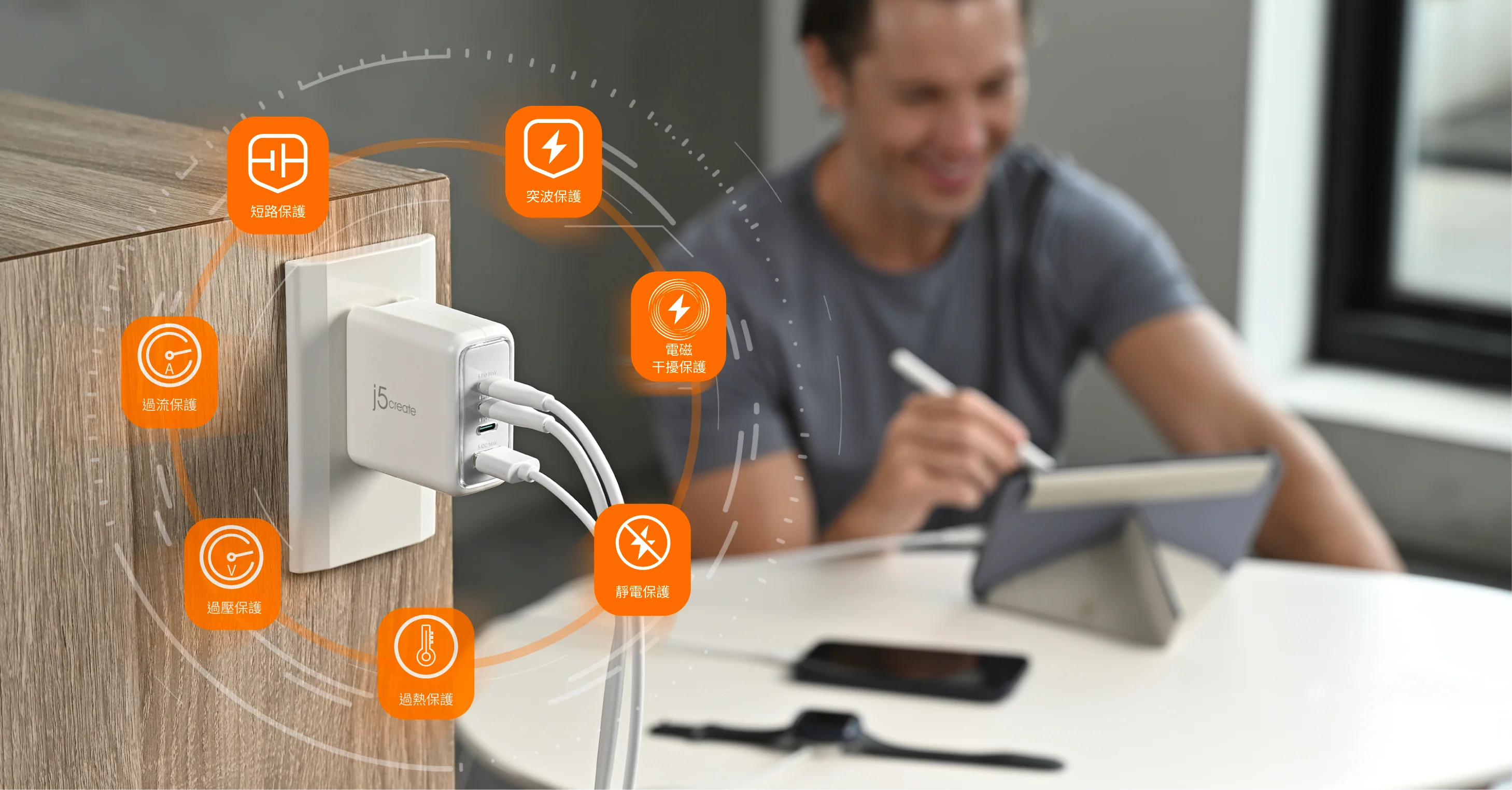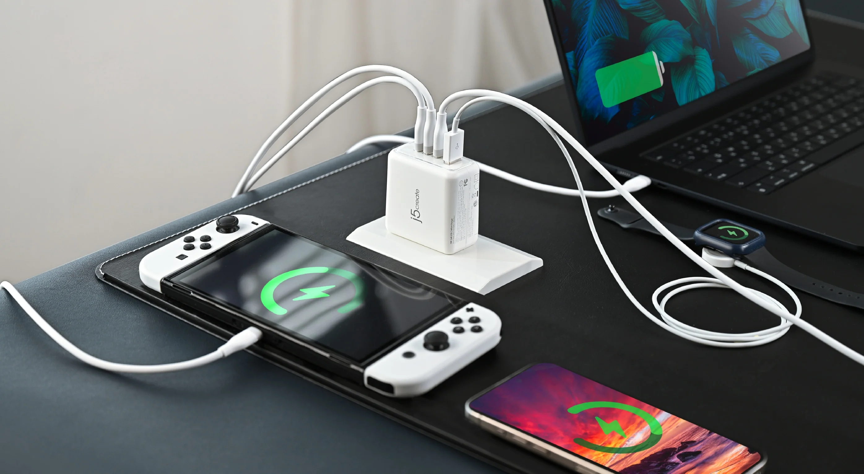 - 適用筆電、iPhone、Android手機、iPad、Android平板、Switch、Steam Deck…等,可同時充電4個裝置。J