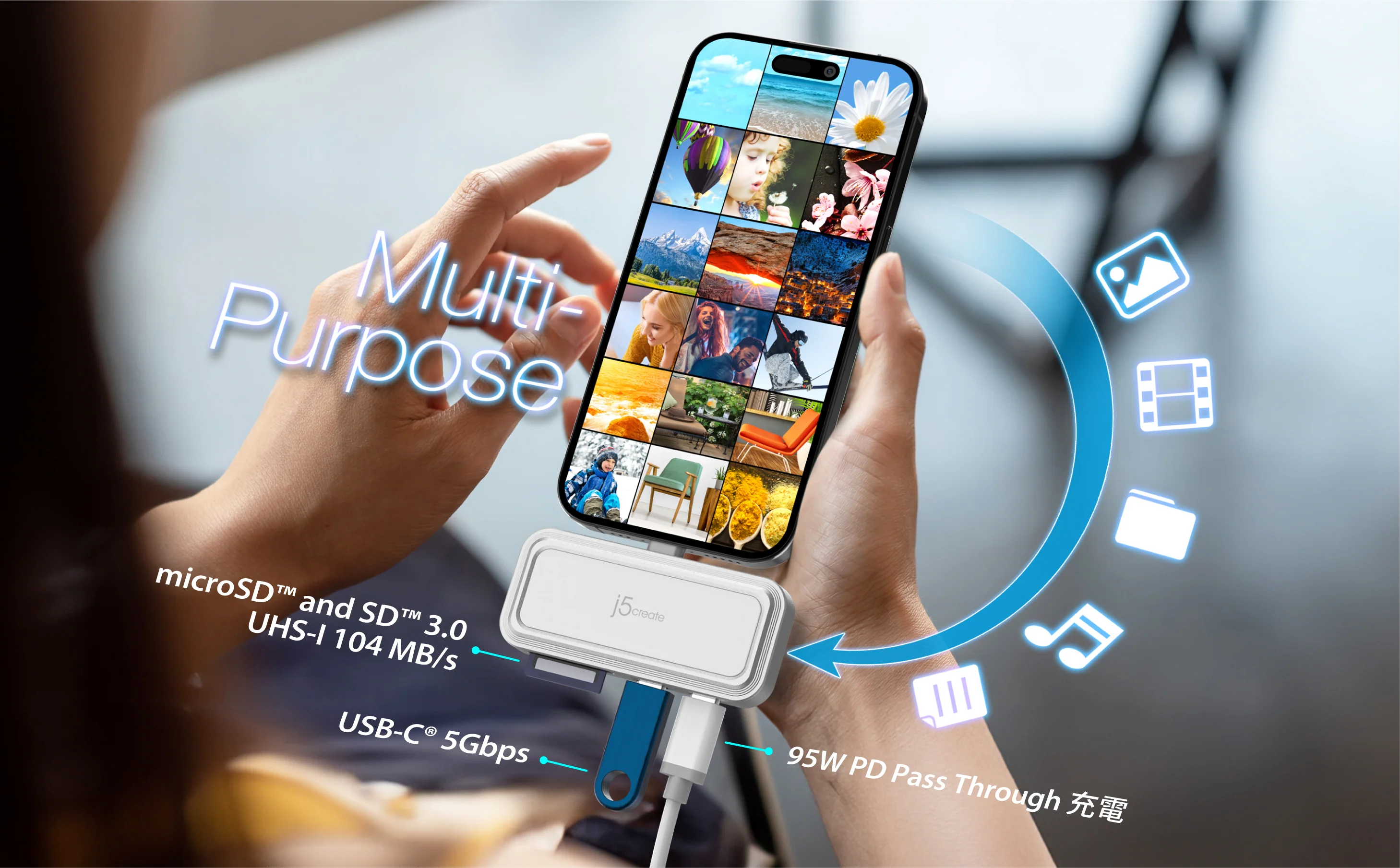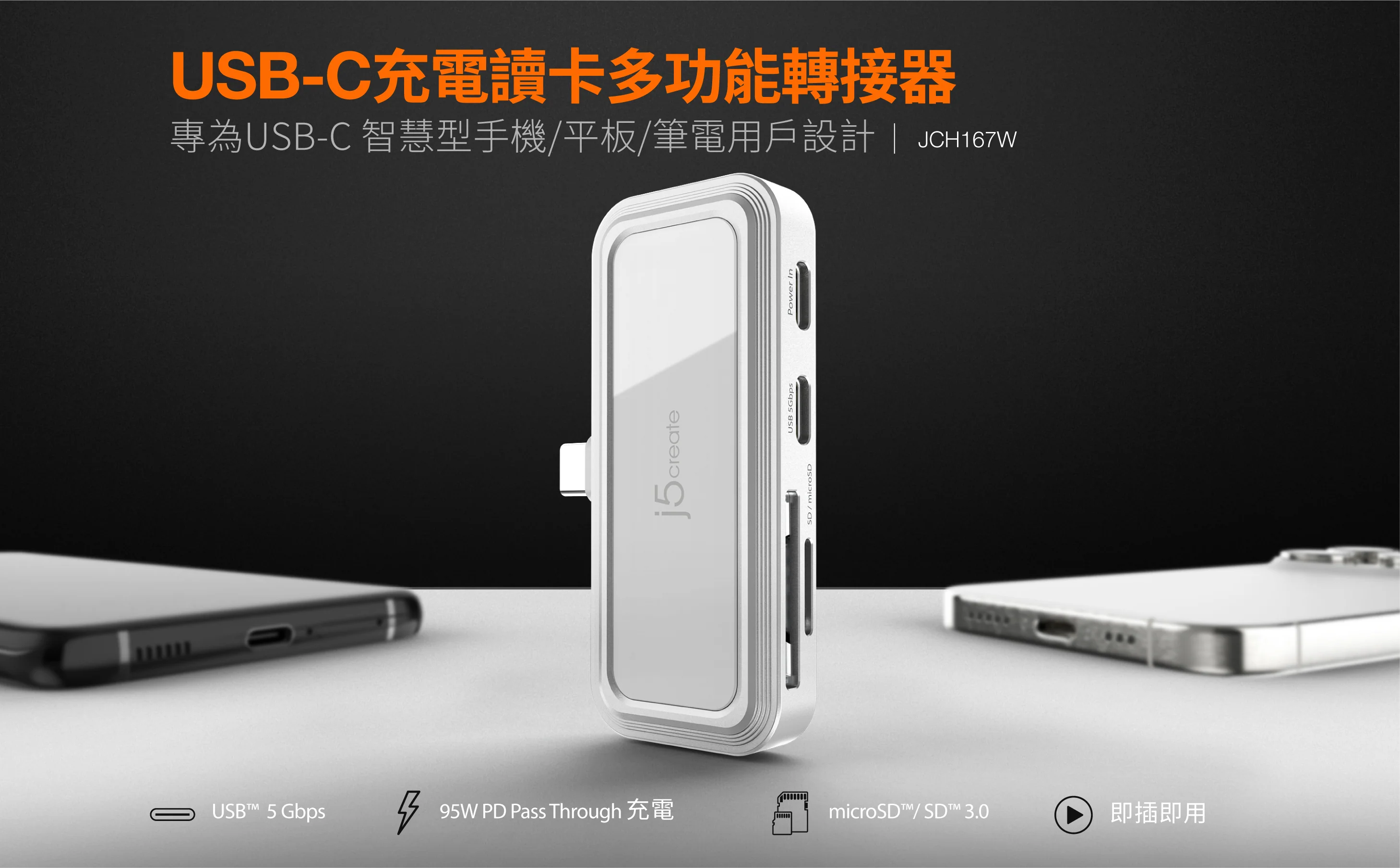 - USB-C接口支援高達5Gbps資料傳輸,USB-C充電口可支援PD3.0 95W Pass Through充電,SD/microSD讀卡機傳輸速度高達104MB/s。
