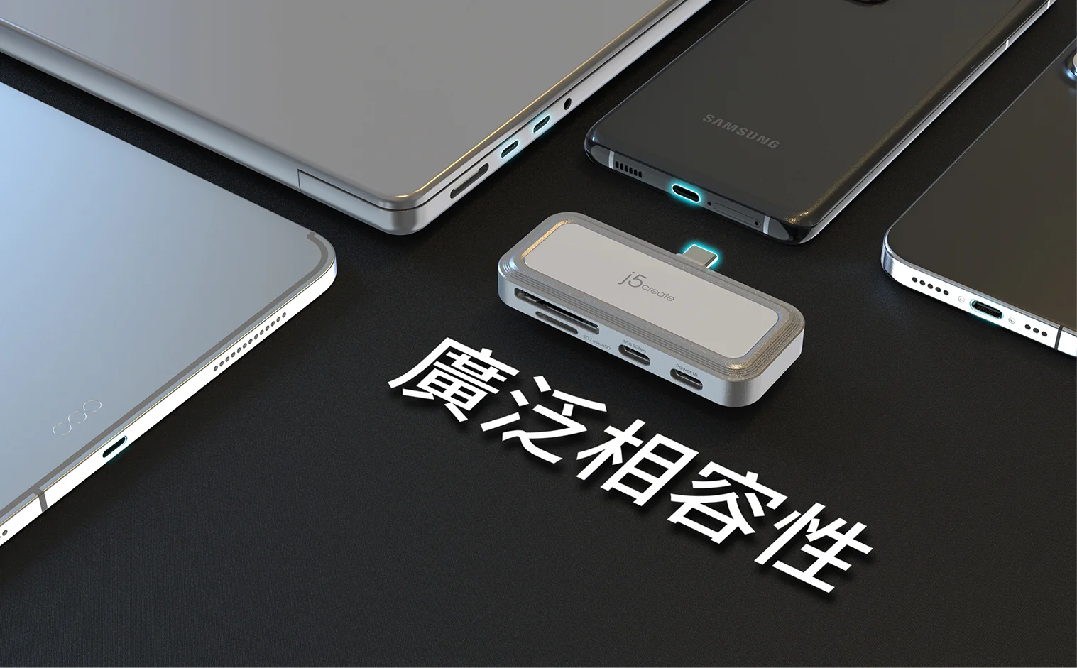 - 可擴充一個USB-C接口與一個USB-C充電口,附極速SD/microSD讀卡機,適用於USB-C的裝置。