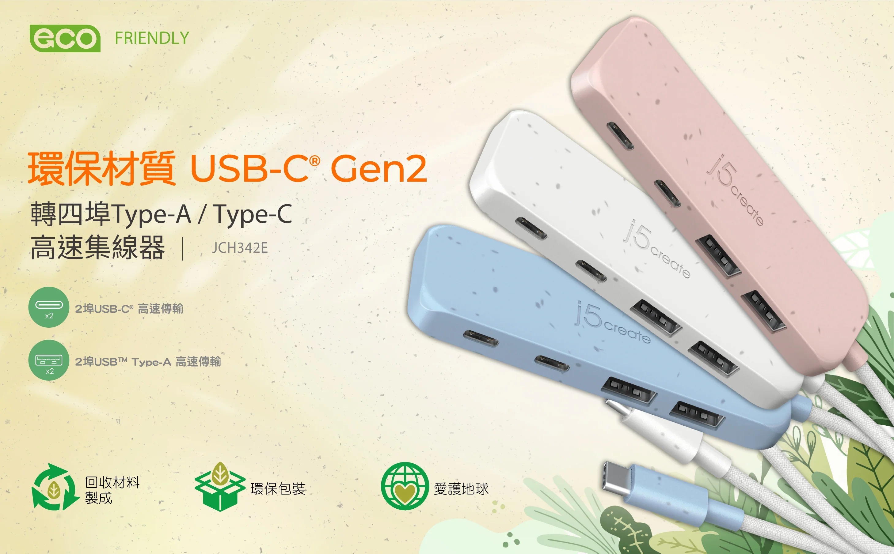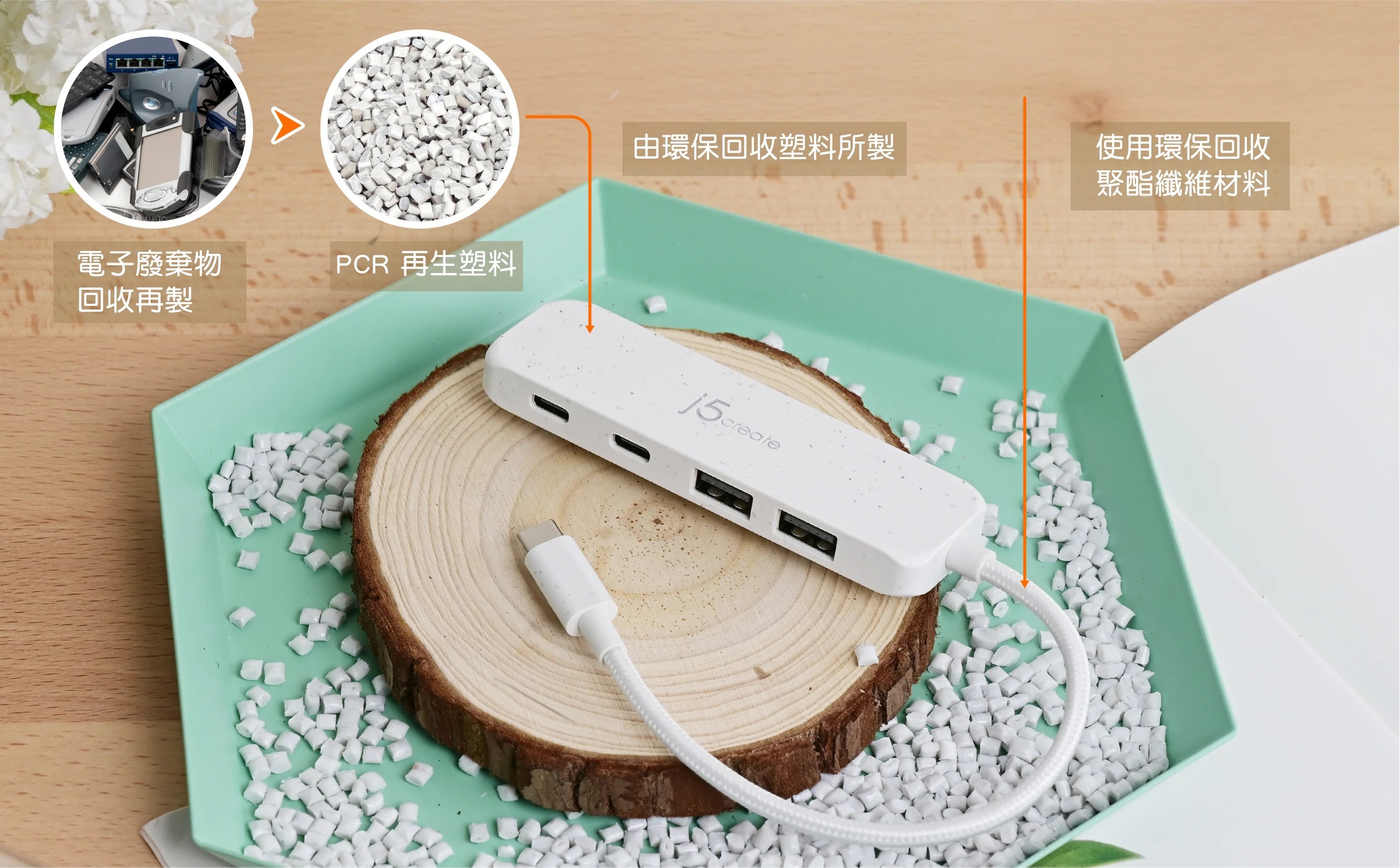 - 結合科技與環保,JCH342E是一款由UL和GRL認證的環保回收材料製作的產品。