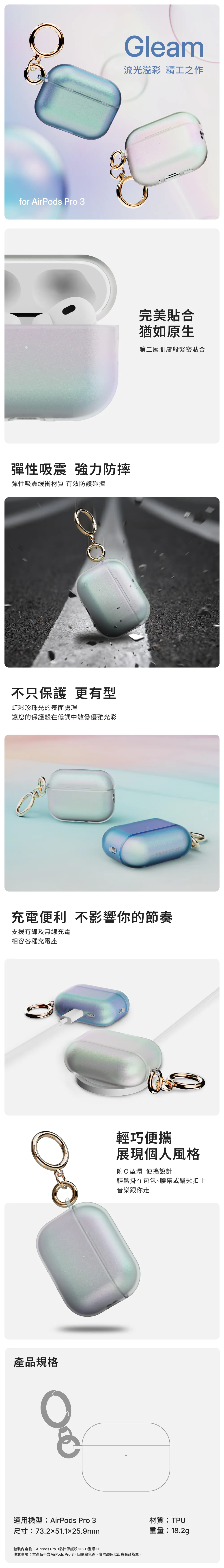 - 精緻的虹彩塗層與珍珠般的光澤,兼具優雅設計和可靠保護,提升耳機的時尚魅力。
