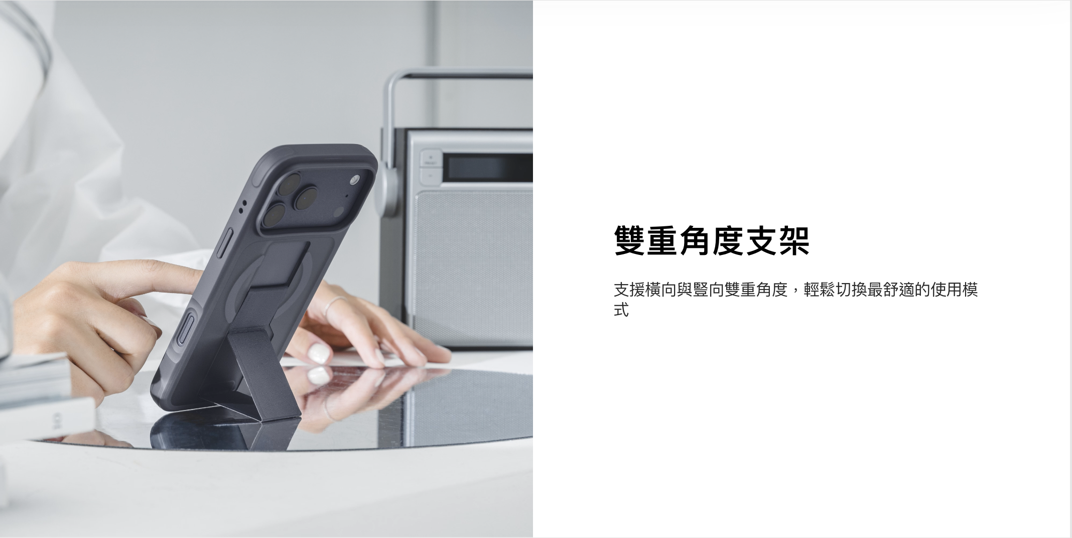 - 支援橫向與豎向雙重角度,輕鬆切換最舒適的使用模式