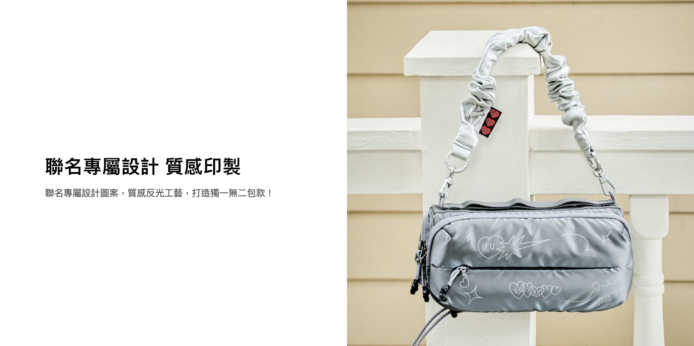 - 聯名專屬設計圖案,質感反光工藝,打造獨一無二包款!