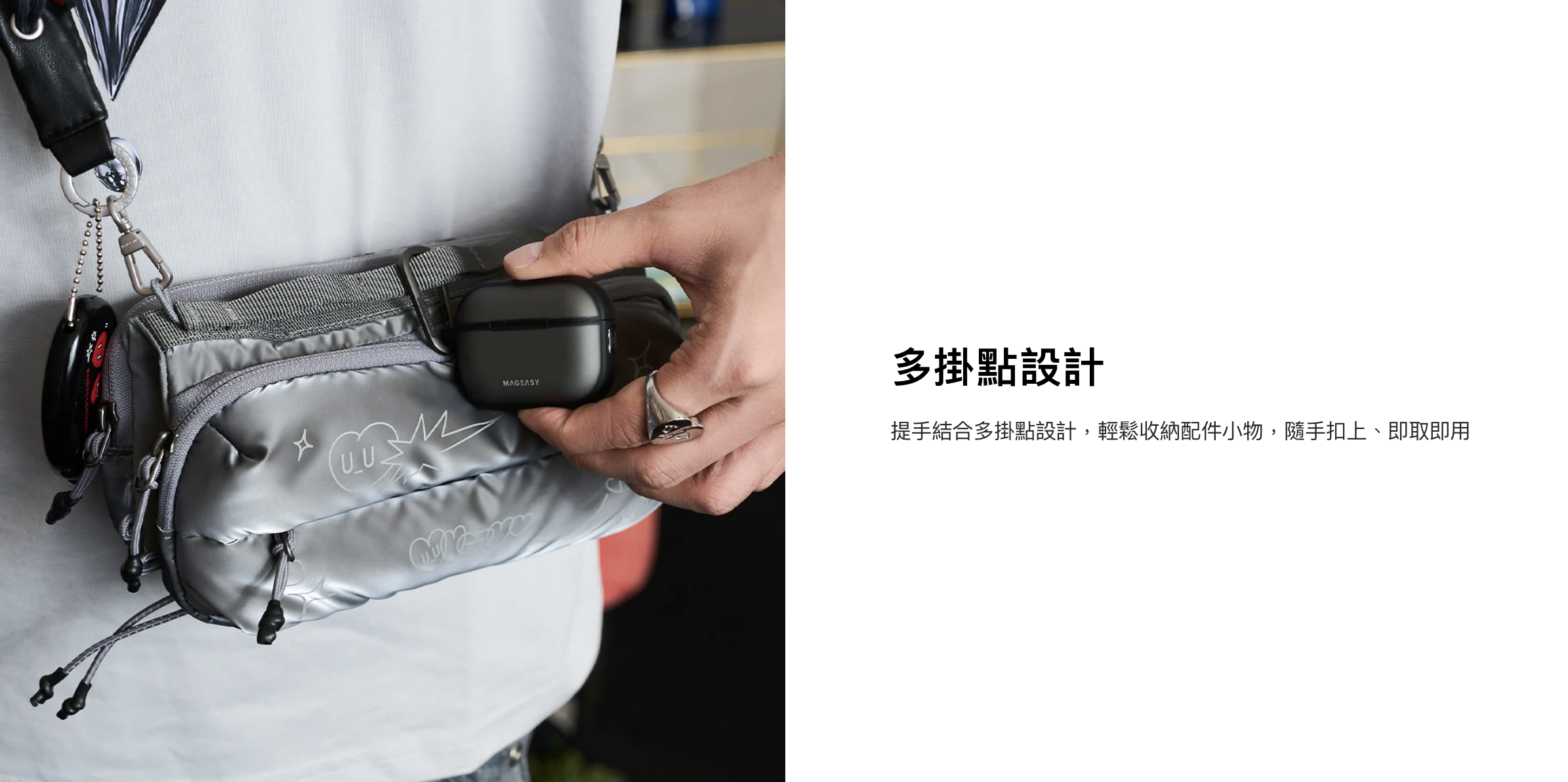 - 提手結合多掛點設計,輕鬆收納配件小物,隨手扣上、即取即用