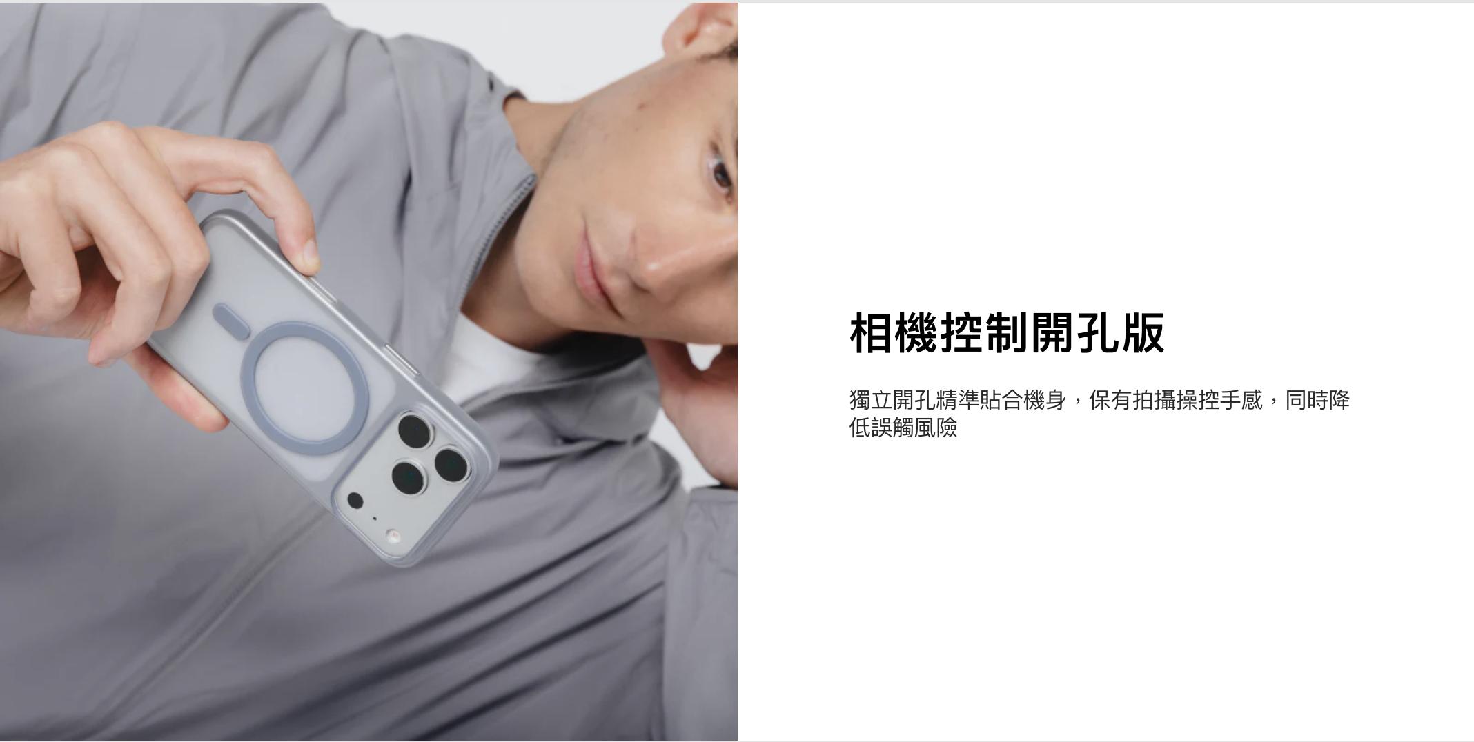 - 獨立開孔精準貼合機身,保有拍攝操控手感,同時降低誤觸風險