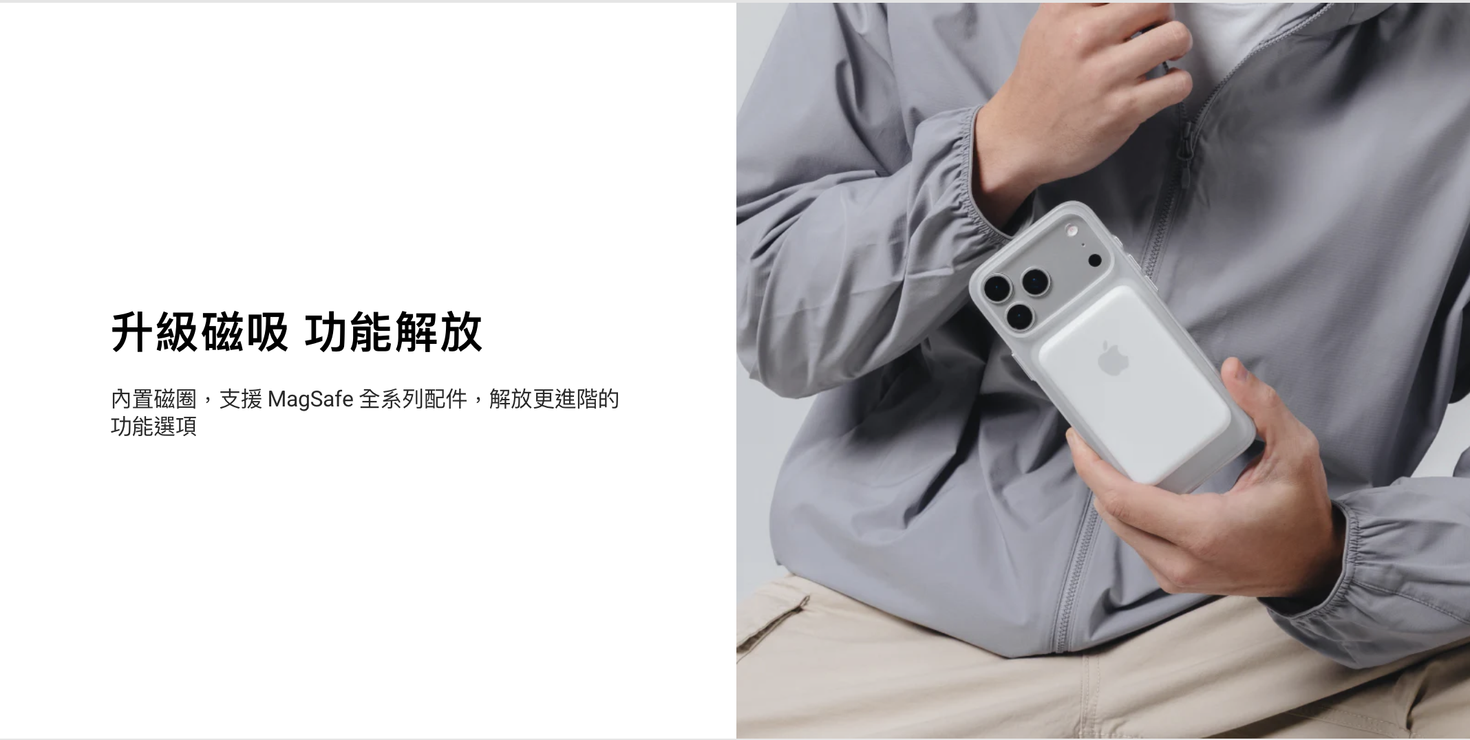 - 內置磁圈,支援 MagSafe 全系列配件,解放更進階的功能選項