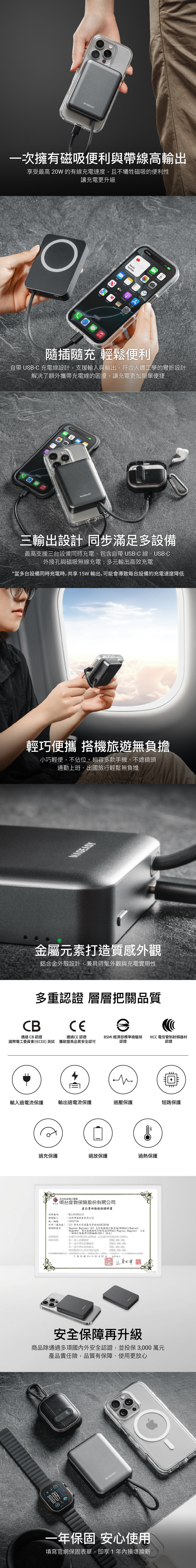 - 一次擁有磁吸便利與帶線高輸出 享受最高 20W 的有線充電速度,且不犧牲磁吸的便利性,讓充電更升級。