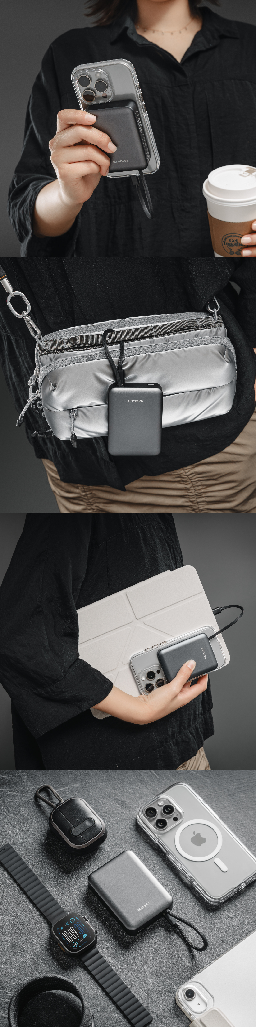 - 輕巧便攜搭機旅遊無負擔 小巧輕便,不佔位。相容多款手機、不遮鏡頭。38.5Wh 電池容量符合航空 安全規範,出門旅行
