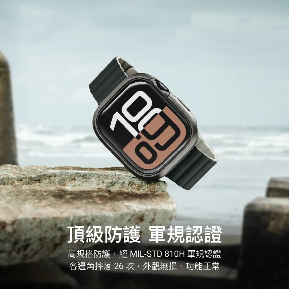 - 採用航太級鋁合金與高韌性 TPU 雙料材質包覆 Apple Watch/Apple Watch Ultra,防護性與耐磨度兼具