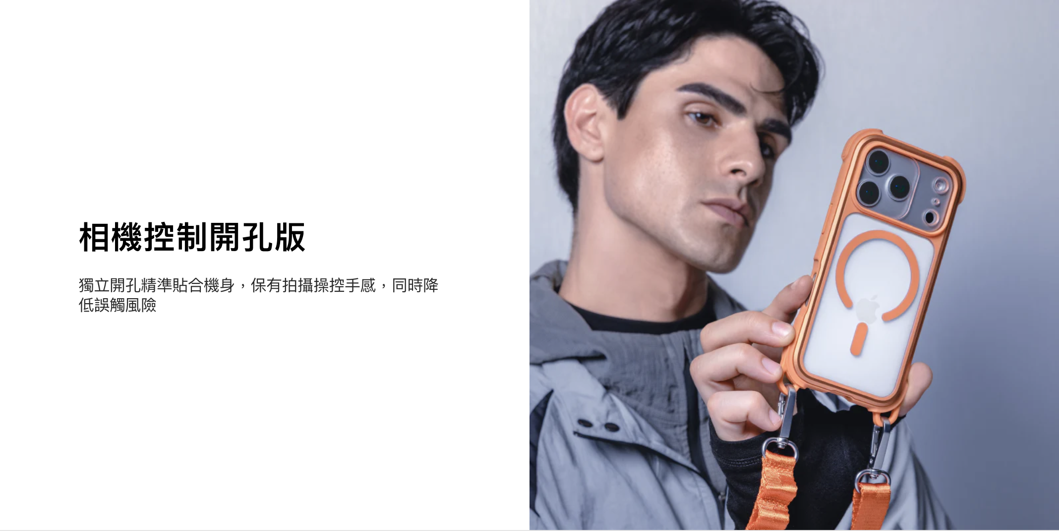 - 獨立開孔精準貼合機身,保有拍攝操控手感,同時降低誤觸風險