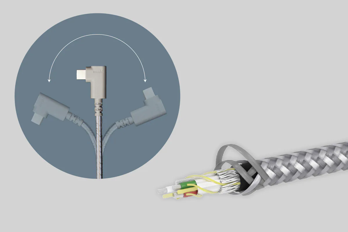 Integra™ 強韌系列耐用傳輸線以90度彎角接頭設計為特色,減少接頭的拉力負擔及典型的磨損,讓充電更為便利順暢。適合放在車內支架導航使用時為裝置充電,或邊玩手遊時邊充電使用。