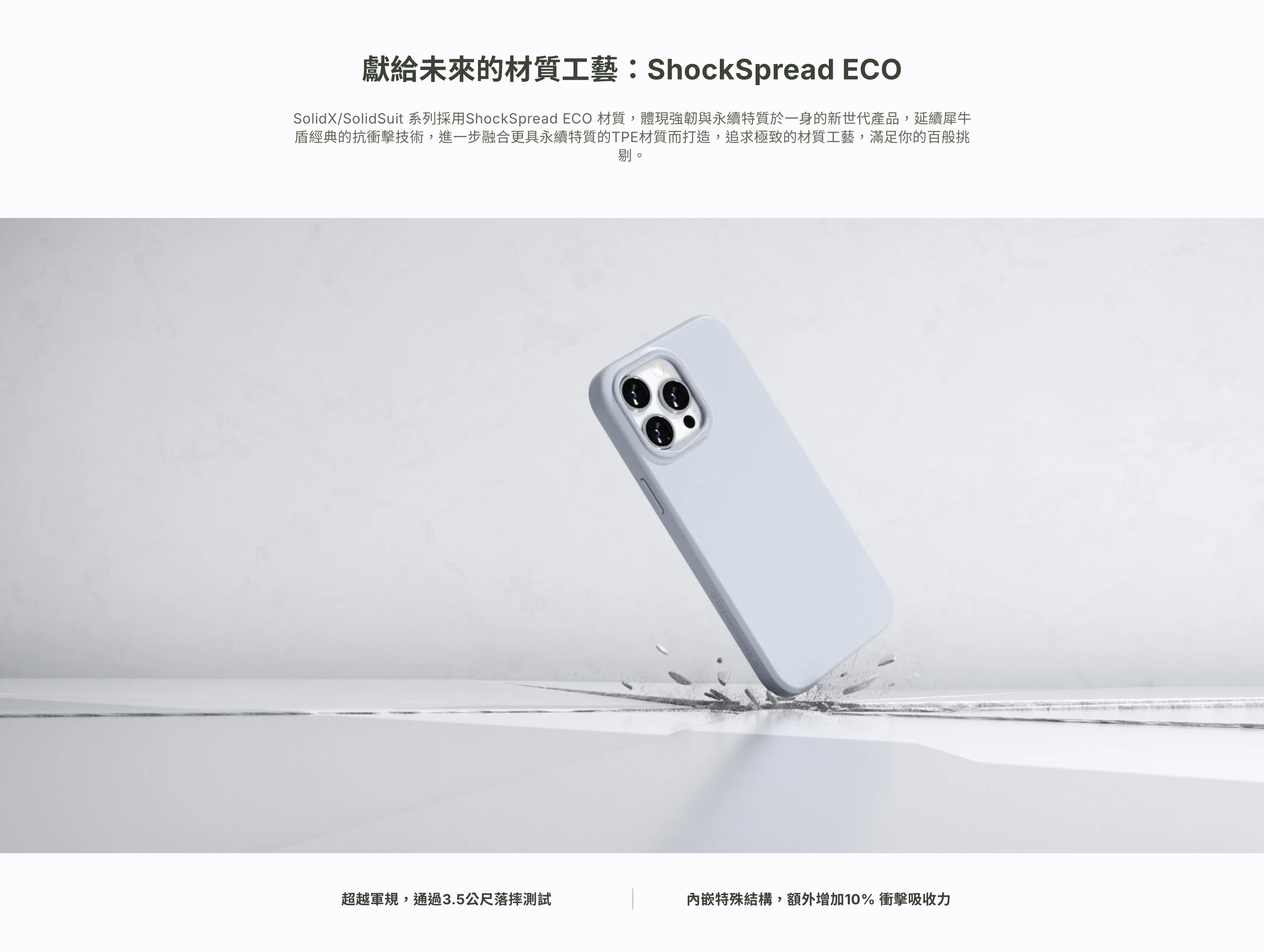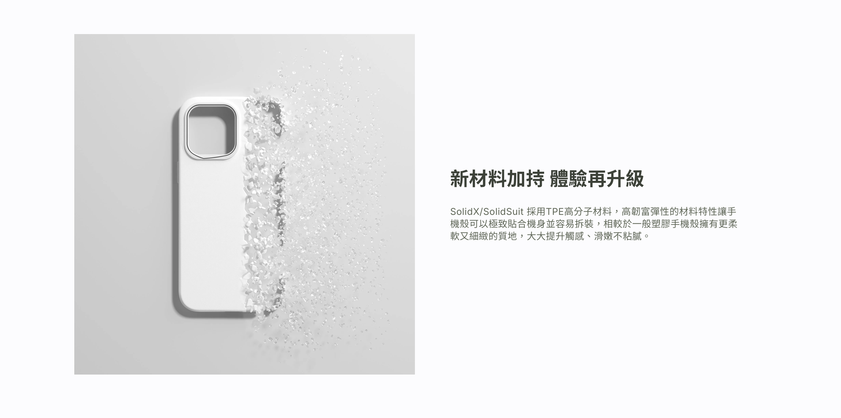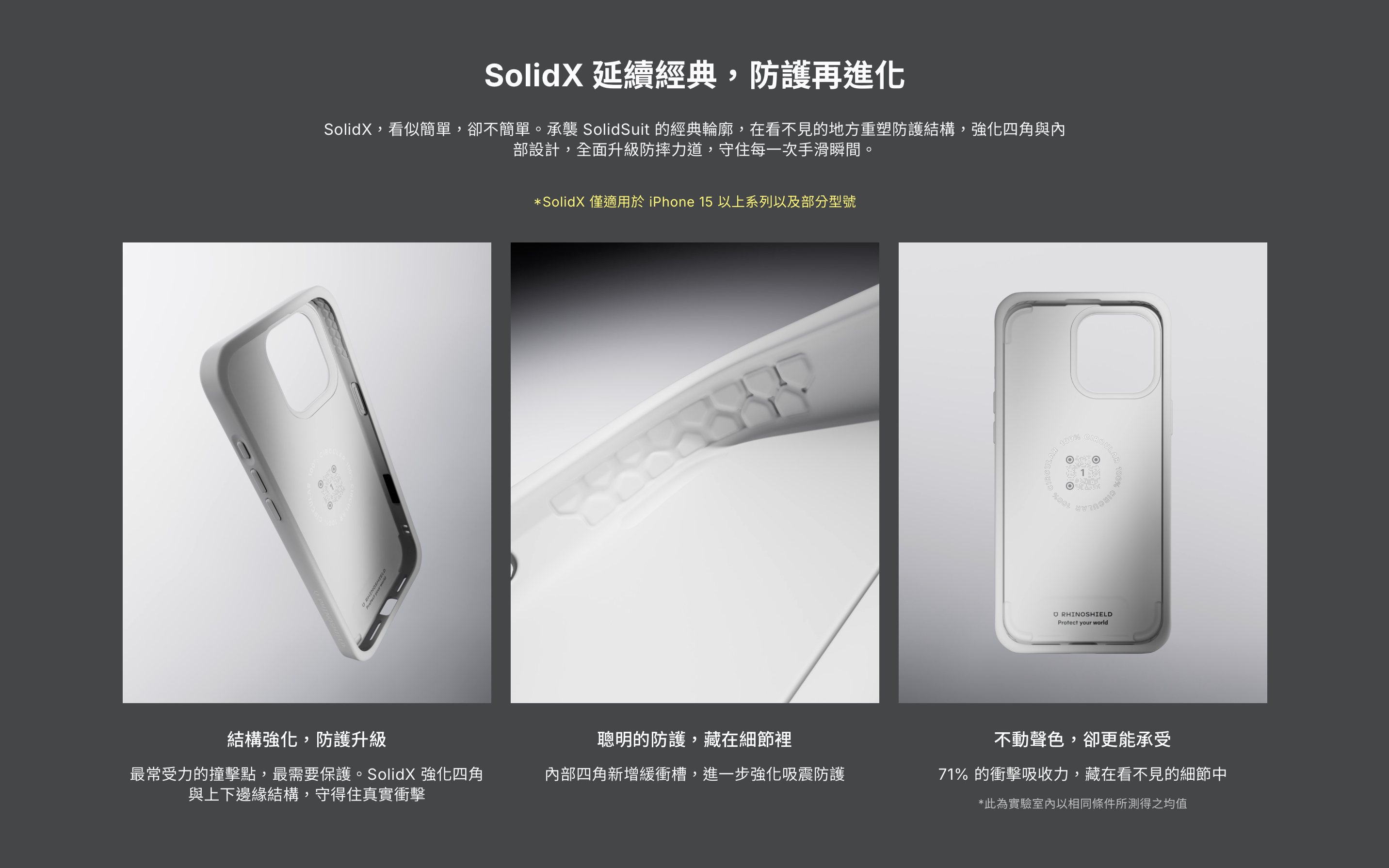 SolidX,看似簡單,卻不簡單。承襲 SolidSuit 的經典輪廓,在看不見的地方重塑防護結構,強化四角與內部設計,全面升級防摔力道,守住每一次手滑瞬間。