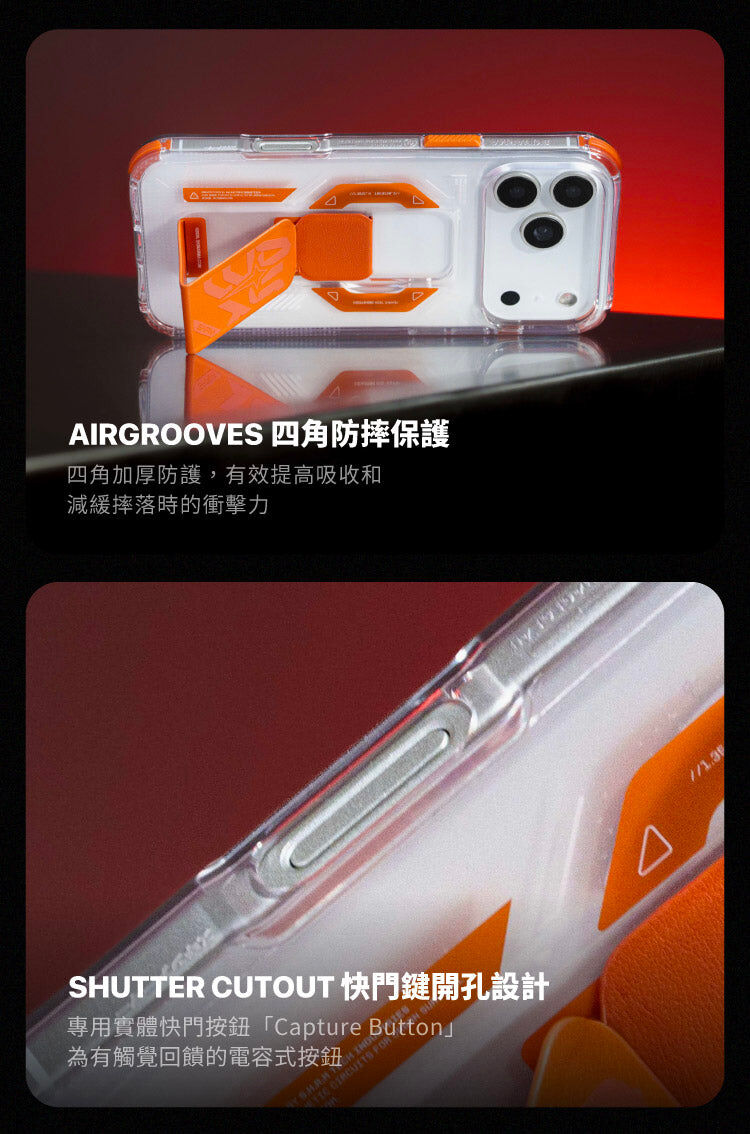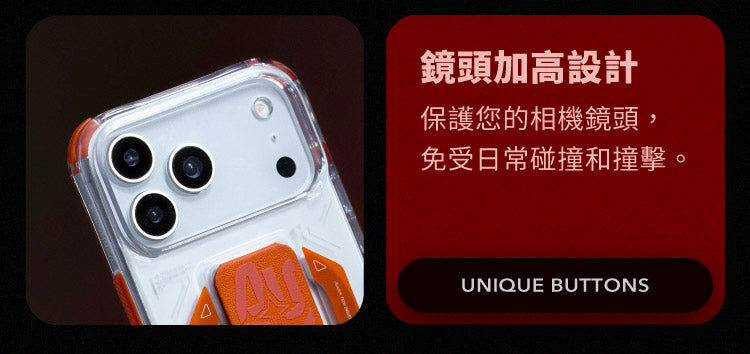 - 鏡頭加高設計保護相機鏡頭不刮傷