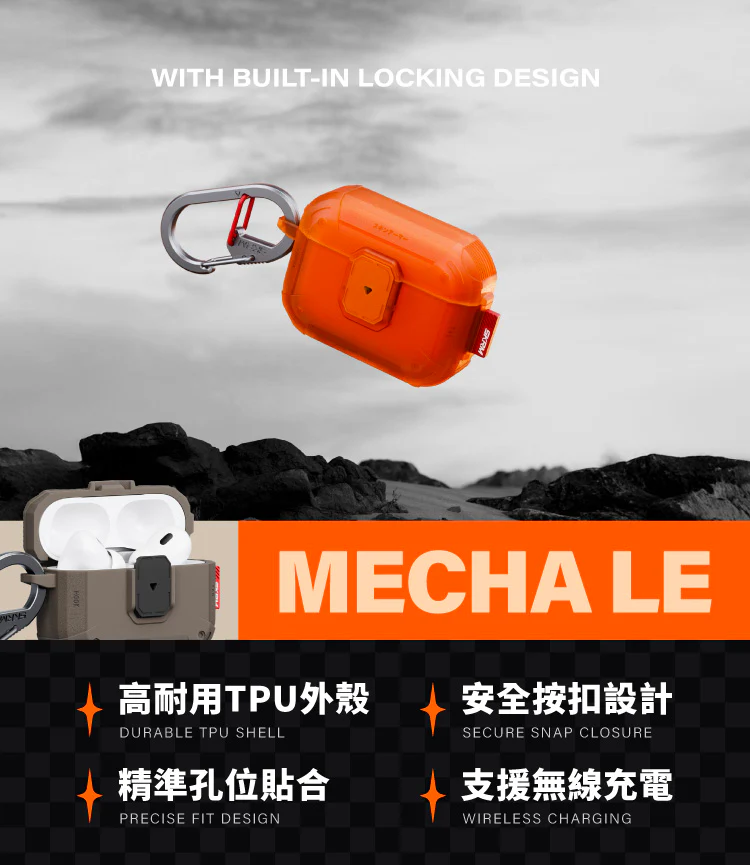 - 採用高耐用 TPU 材質外殼,安全按扣設計。