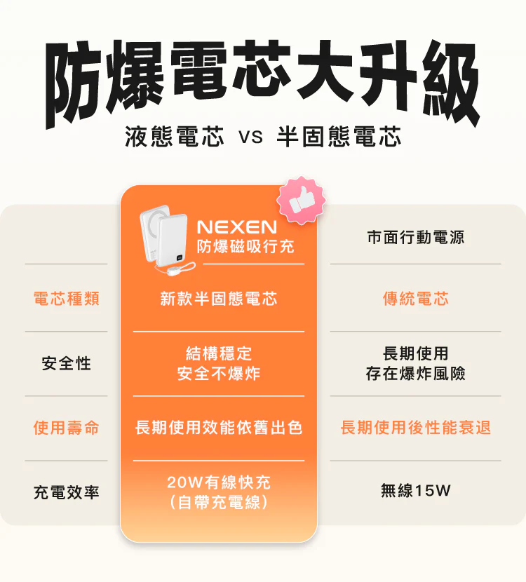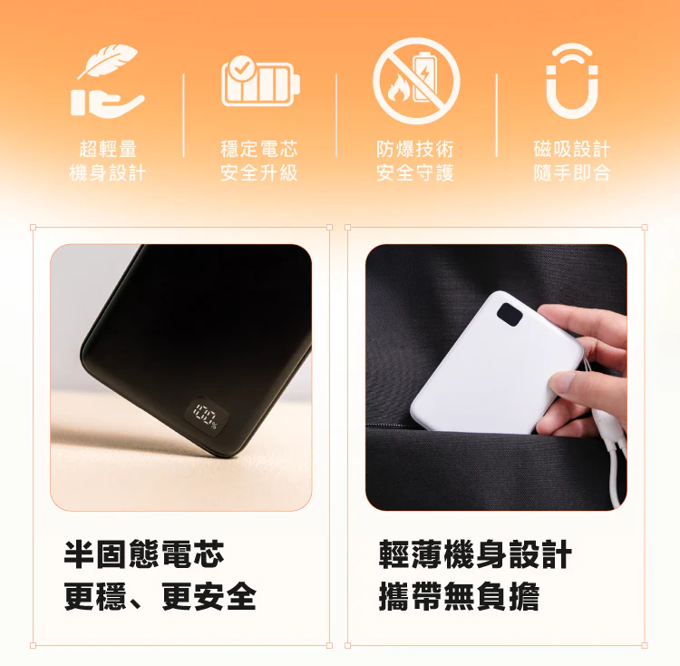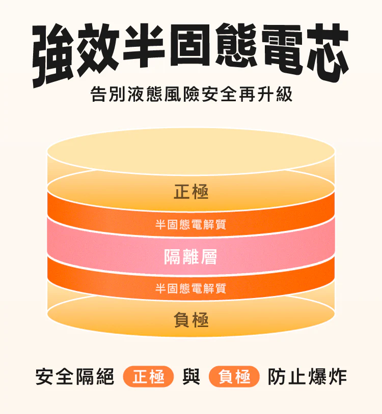 - 半固態電芯設計,安全耐用不怕爆。