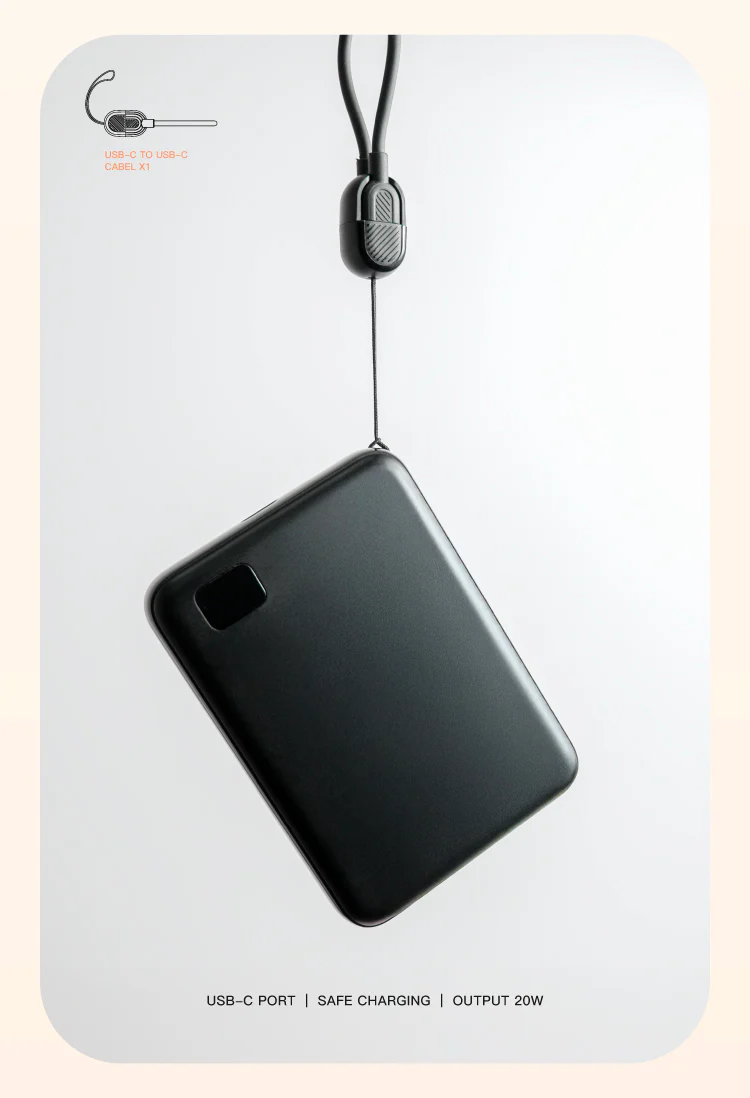 - 內建 60W C to C 充電吊繩,攜帶充電一線搞定。
