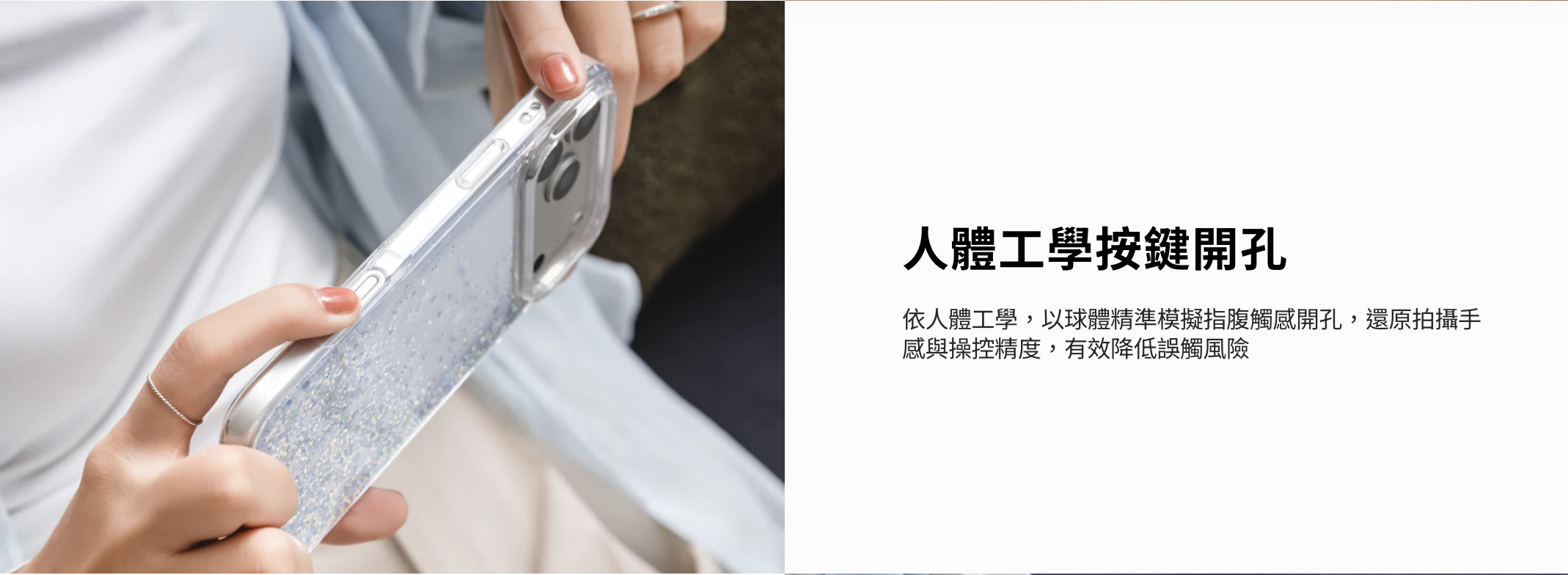 - 加大相機控制開孔,有效減少誤觸,提供更精準的使用體驗。