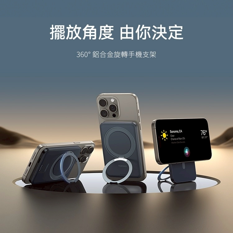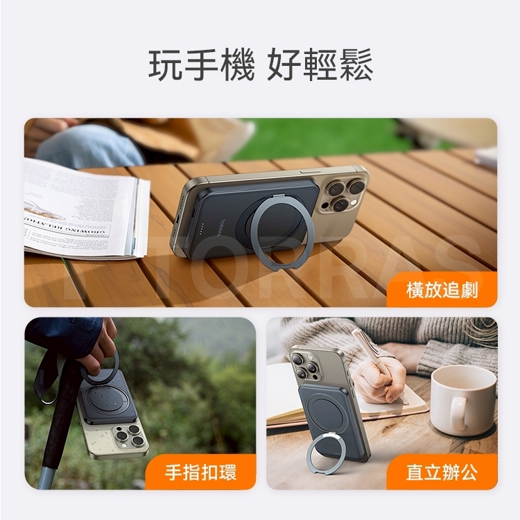 - 獨家 360 度旋轉手機支架結合行動電源,直立橫放玩手機解放雙手