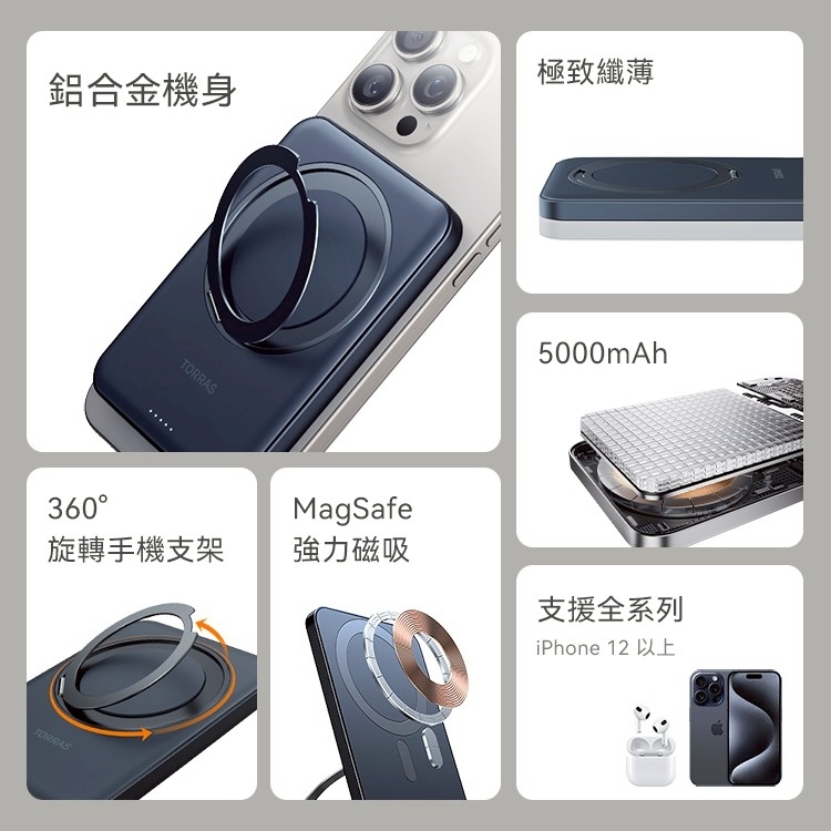 - 支援 MagSafe 磁吸充電,超強 12.9N 磁吸力穩固不掉落