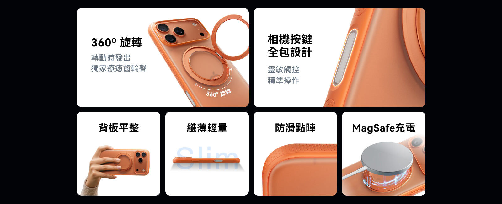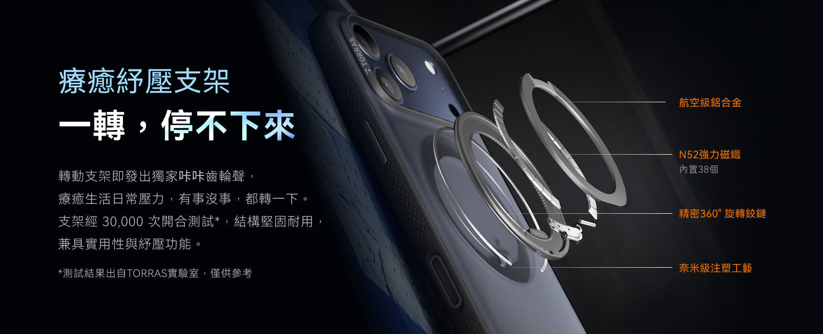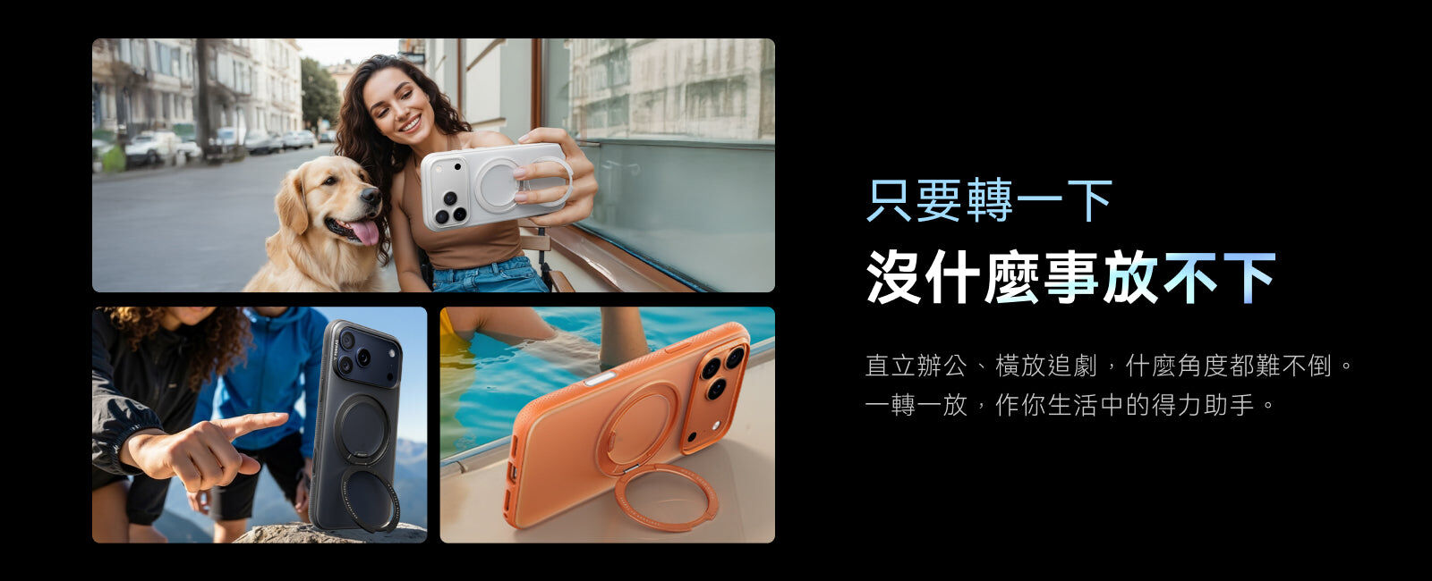 - 凹槽設計方便拿取,航太級 O 型鋁合金隱藏支架好收納,完美貼合手機背板不翹起