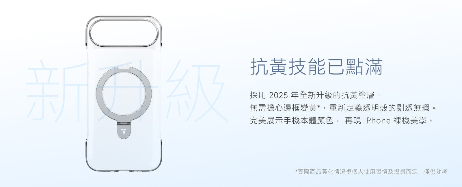 - 2025 全新抗黃塗層再升級,防止汗水、紫外線、化妝品等黃化老化因素,常保剔透