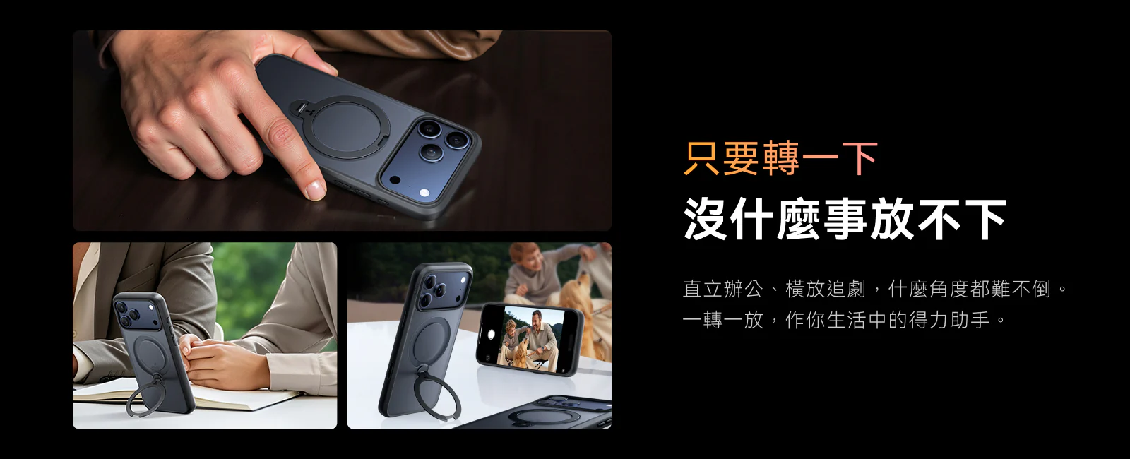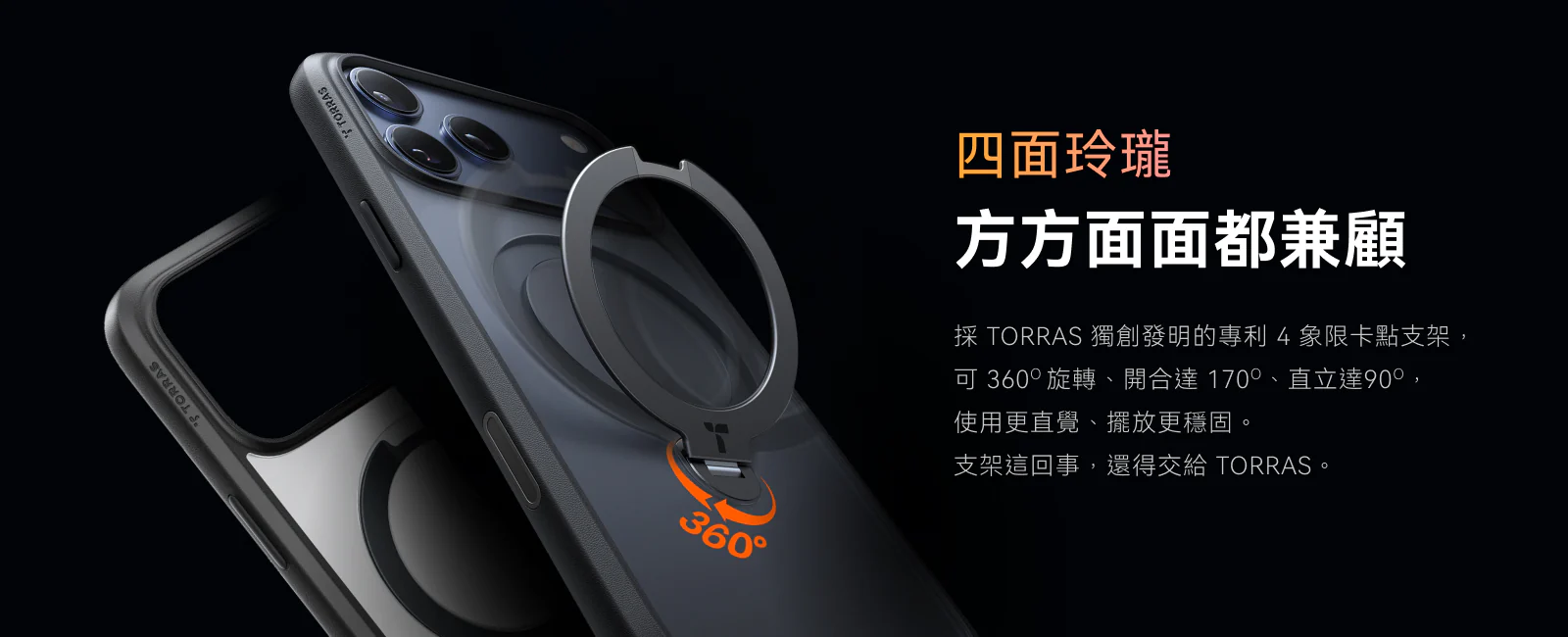 - 領先業界獨創 4 段旋轉段落,輕輕一扭就是最佳擺放位置,支架進化無極限