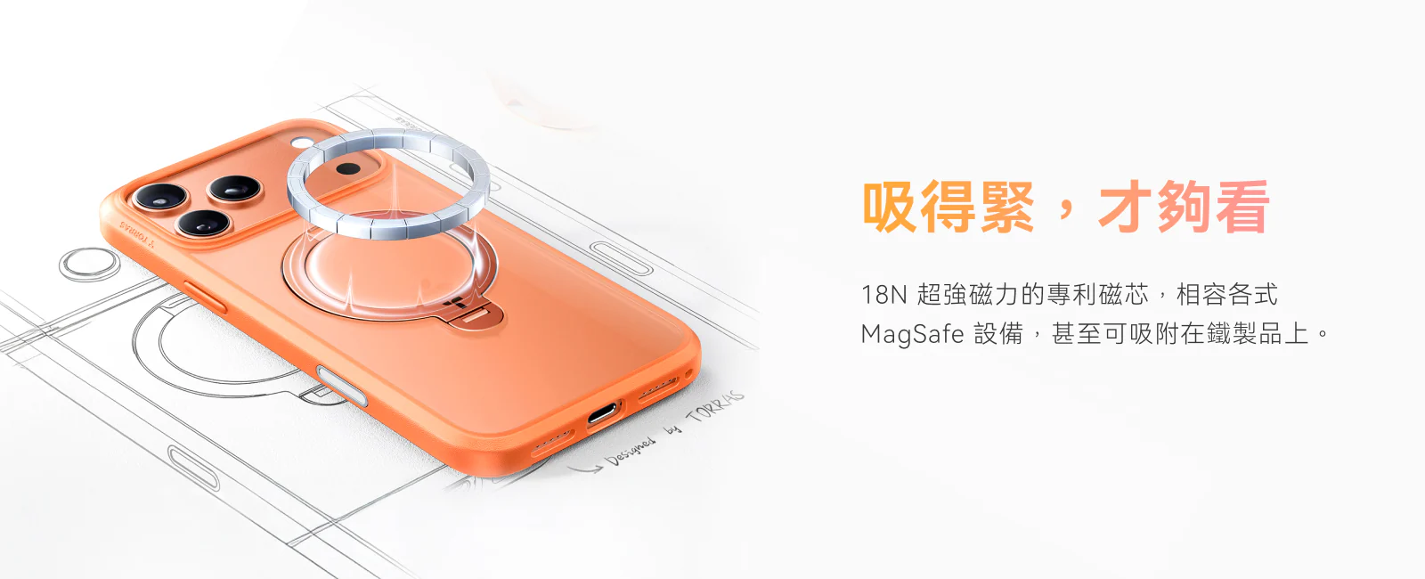 - 18N超強磁力,相容各式MagSafe卡包、行動電源、充電盤,亦可吸附於冰箱等鐵製品之上
