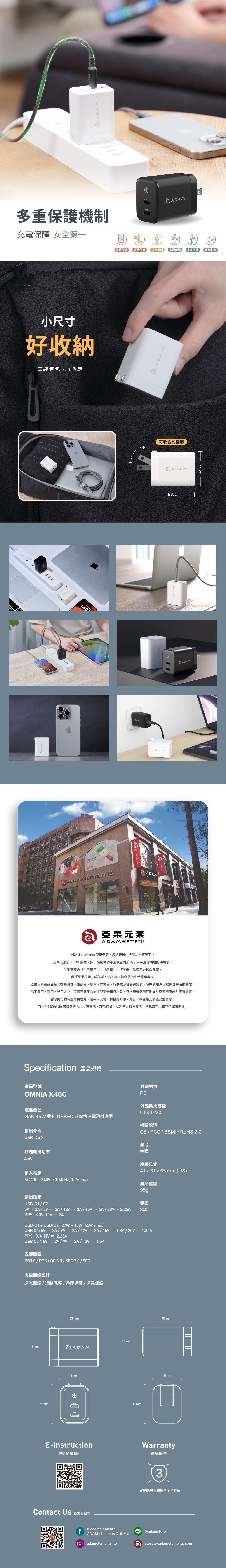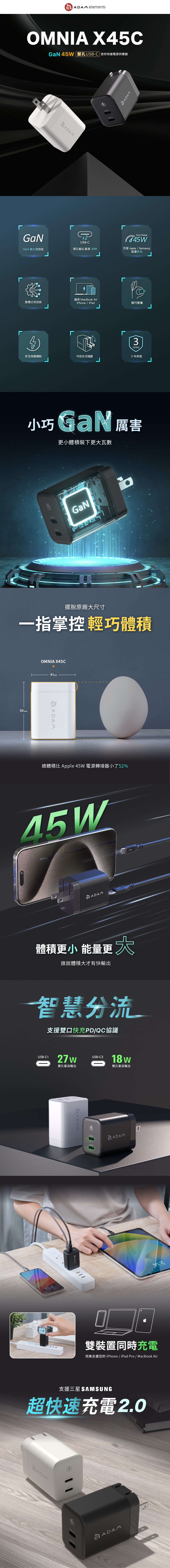 - 最高輸出45W,完美支援您的iPhone,iPad Pro 與Macbook Air